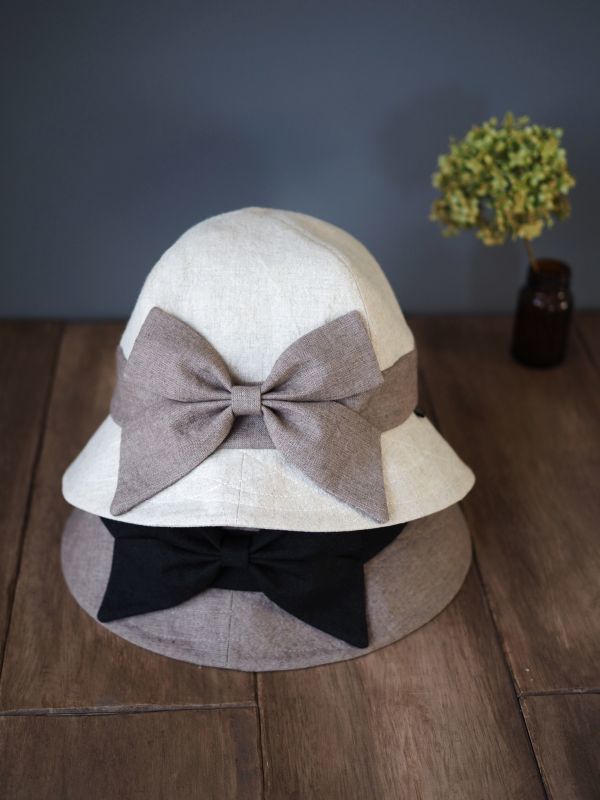 凛としたリボンの帽子 生成&モカ LLサイズ |
